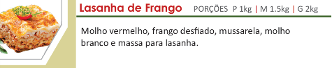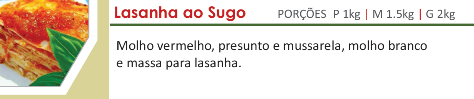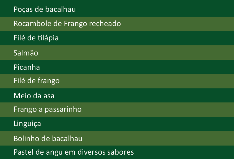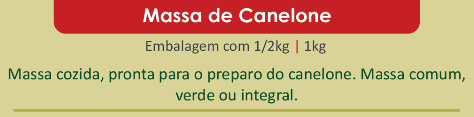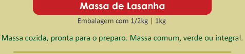 Além de nossas massas temos algumas carnes e petiscos congelados para garantir suas refeições. Seriam eles: